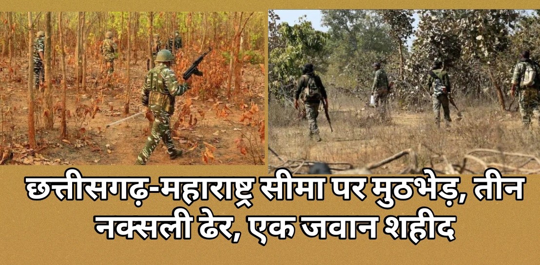 छत्तीसगढ़-महाराष्ट्र सीमा पर मुठभेड़, तीन नक्सली ढेर, एक जवान शहीद