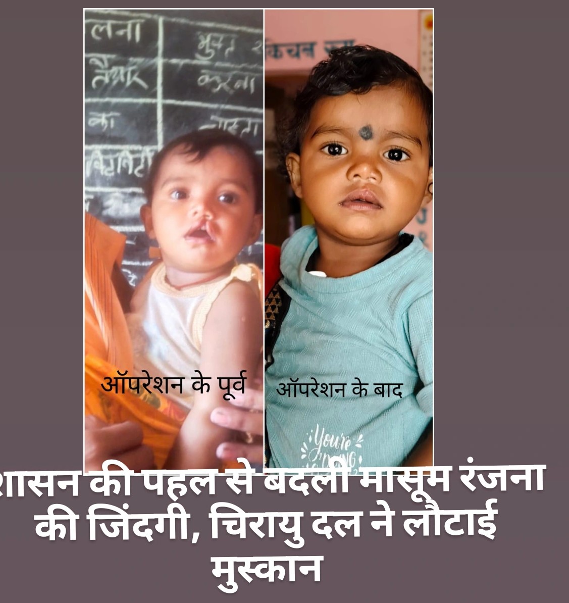 रायपुर,बस्तर संभाग के बकावण्ड ब्लॉक अंतर्गत ग्राम जामगुड़ा (धनपुर) में एक मासूम बच्ची की जिंदगी में शासन की स्वास्थ्य योजना ने नई रोशनी भर दी। महेश भारती की बेटी रंजना, जो जन्म से कटे होंठ (क्लेफ्ट लिप) की समस्या से जूझ रही थी, अब पूरी तरह स्वस्थ होकर सामान्य जीवन की ओर बढ़ रही है।रंजना के जन्म के साथ ही परिवार में खुशी तो आई, लेकिन उसकी गंभीर स्वास्थ्य समस्या ने माता-पिता को चिंता में डाल दिया। आर्थिक रूप से कमजोर परिवार के लिए निजी अस्पताल में इलाज कराना संभव नहीं था, जिससे वे खुद को असहाय महसूस कर रहे थे।उम्मीद की किरण तब जगी, जब 19 जून 2025 को चिरायु दल बकावण्ड की टीम आँगनबाड़ी केंद्र में स्वास्थ्य परीक्षण के लिए पहुँची। टीम ने रंजना की स्थिति को गंभीरता से लेते हुए उसे जिला प्रारंभिक हस्तक्षेप केंद्र (DEIC) रेफर किया। इसके बाद जिला स्वास्थ्य समिति के सहयोग से इलाज की प्रक्रिया शुरू हुई।6 नवंबर 2025 को रंजना को रायपुर स्थित मेडिसाइन अस्पताल में भर्ती कराया गया, जहाँ विशेषज्ञ डॉक्टरों की टीम ने उसका सफल ऑपरेशन किया। राहत की बात यह रही कि जाँच, ऑपरेशन और इलाज का पूरा खर्च शासन द्वारा वहन किया गया, जिससे परिवार को आर्थिक बोझ नहीं उठाना पड़ा।13 फरवरी को स्वास्थ्य विभाग की टीम द्वारा किए गए फॉलो-अप में रंजना पूरी तरह स्वस्थ पाई गई। ऑपरेशन के बाद उसके चेहरे में आए बदलाव और उसकी मुस्कान ने परिवार की वर्षों पुरानी चिंता को दूर कर दिया।परिजनों ने शासन की इस जनकल्याणकारी योजना के प्रति आभार व्यक्त करते हुए कहा कि अब उन्हें अपनी बेटी के उज्ज्वल भविष्य को लेकर किसी प्रकार की चिंता नहीं है।