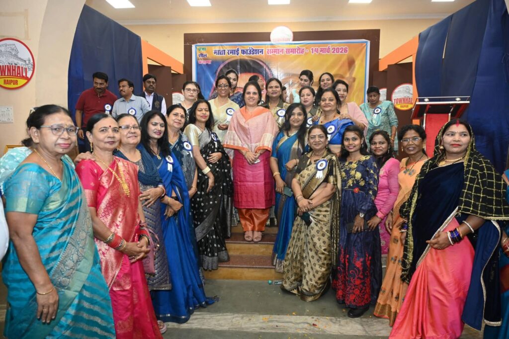रायपुर। अंतरराष्ट्रीय महिला दिवस के उपलक्ष्य में माता रामाई फाउंडेशन द्वारा 14 मार्च 2026 को रायपुर के टाउन हॉल कलेक्टरेट में भव्य माता रामाई सम्मान समारोह का आयोजन किया गया। कार्यक्रम का उद्देश्य समाज में महिलाओं के संघर्ष, त्याग, समर्पण और उनकी उपलब्धियों को सम्मानित करना था। इस अवसर पर समाज सेवा, शिक्षा, कला, संस्कृति, खेल, मीडिया और अन्य विभिन्न क्षेत्रों में उल्लेखनीय योगदान देने वाली महिलाओं को मोमेंटो, “माता रामाई” पुस्तक और प्रशस्ति पत्र प्रदान कर सम्मानित किया गया।