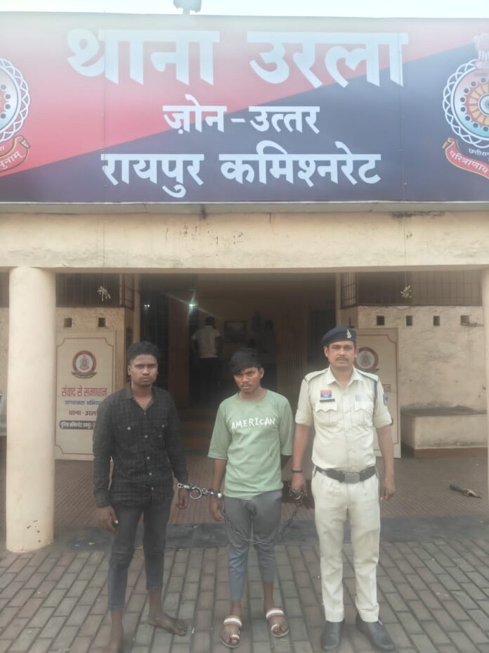 रायपुर,। राजधानी रायपुर के उरला क्षेत्र में हुई चोरी की घटना का पुलिस ने तेजी से खुलासा करते हुए महज कुछ घंटों के भीतर दो आरोपियों को गिरफ्तार कर लिया है, जबकि एक आरोपी अभी भी फरार है।मिली जानकारी के अनुसार उरला निवासी दिनेश शर्मा ने थाना उरला में शिकायत दर्ज कराई कि 15-16 मार्च की रात वह अपने घर में ताला लगाकर सो रहे थे। देर रात जब वे उठे तो देखा कि मुख्य दरवाजे का ताला टूटा हुआ है और कमरे से मोबाइल फोन व नगदी गायब है। अज्ञात चोर घर में घुसकर चोरी कर फरार हो गए थे।