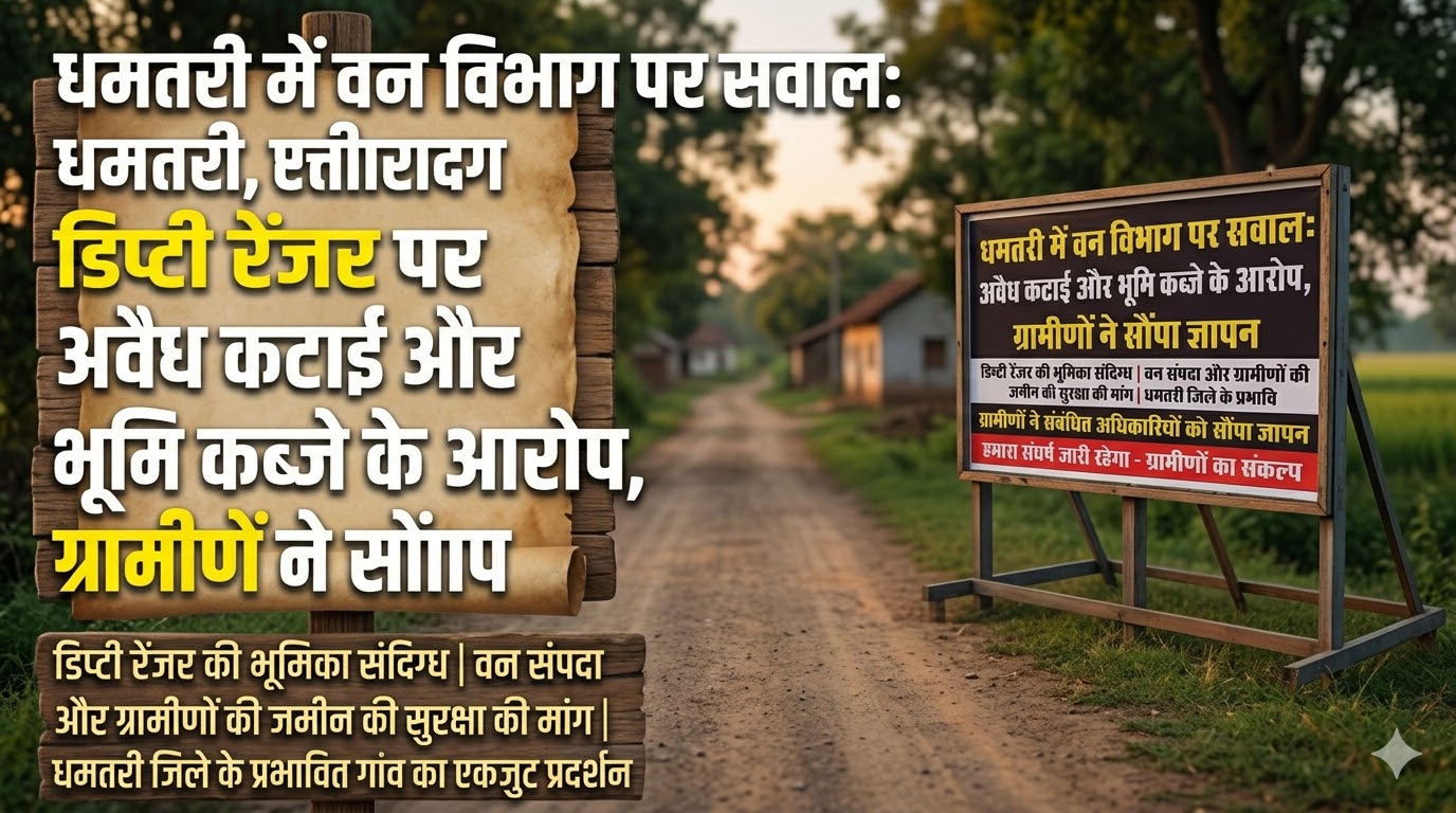 धमतरी। जिले के मगरलोड विकासखंड से वन विभाग से जुड़ा एक गंभीर मामला सामने आया है, जहां विभाग के एक डिप्टी रेंजर पर भ्रष्टाचार, अवैध पेड़ों की कटाई और शासकीय भूमि पर कब्जा करने जैसे आरोप लगाए गए हैं। ग्राम सोनपैरी के ग्रामीणों ने इस संबंध में कलेक्ट्रेट पहुंचकर लिखित शिकायत दर्ज कराई और पूरे मामले की उच्चस्तरीय जांच की मांग की।