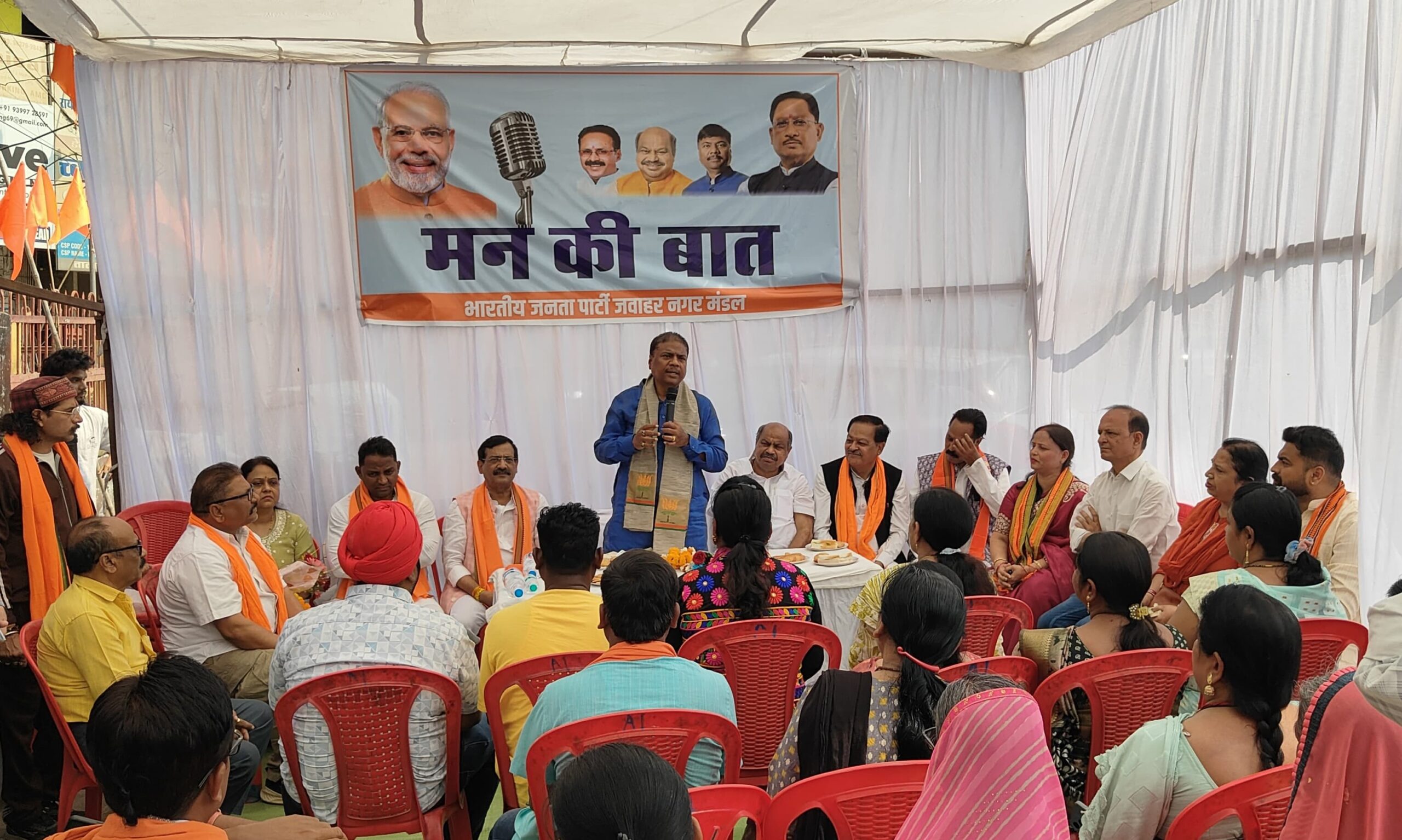 रायपुर,। राजधानी रायपुर के तात्यापारा चौक स्थित वीर शिवाजी प्रतिमा स्थल पर जवाहर नगर मंडल द्वारा मन की बात के 131वें एपिसोड का सामूहिक श्रवण कार्यक्रम आयोजित किया गया। कार्यक्रम में बड़ी संख्या में स्थानीय नागरिकों, कार्यकर्ताओं और जनप्रतिनिधियों की भागीदारी देखने को मिली।इस अवसर पर मुख्य अतिथि के रूप में केदारनाथ कश्यप उपस्थित रहे। उनके साथ पुरंदर मिश्रा और केदारनाथ गुप्ता सहित कई गणमान्य लोग कार्यक्रम में शामिल हुए।कार्यक्रम सुबह लगभग 11 बजे प्रारंभ हुआ, जिसमें उपस्थित लोगों ने प्रधानमंत्री नरेंद्र मोदी के संबोधन को ध्यानपूर्वक सुना। संबोधन में देश के विकास, पर्यावरण संरक्षण और सहकारिता जैसे विषयों पर विशेष जोर दिया गया, जिसे स्थानीय संदर्भ में भी महत्वपूर्ण बताया गया।मंत्री केदारनाथ कश्यप ने अपने उद्बोधन में कहा कि प्रधानमंत्री के विचार समाज के अंतिम व्यक्ति तक पहुंचकर कार्य करने की प्रेरणा देते हैं। वहीं विधायक पुरंदर मिश्रा ने इस प्रकार के आयोजनों को जनसंवाद का प्रभावी माध्यम बताया।कार्यक्रम में प्रीति परगनिया, भारती बागल, सुभाष अग्रवाल, असगर अली, अर्पित सूर्यवंशी, शंकर साहू, राजीव मिश्रा, संदीप जंघेल, रमेश शर्मा, गीता रेड्डी, श्वेता विश्वकर्मा, अमर गिदवानी, अवतार सिंह बागल सहित अनेक पदाधिकारी और कार्यकर्ता मौजूद रहे। आयोजन के सफल संचालन में मंडल के पदाधिकारियों और कार्यकर्ताओं की सक्रिय भूमिका रही।