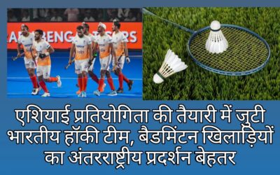 बैडमिंटन खिलाड़ियों का अंतरराष्ट्रीय प्रदर्शन बेहतर नई दिल्ली, भारतीय पुरुष हॉकी टीम आगामी एशियाई प्रतियोगिता को ध्यान में रखते हुए अभ्यास शिविर में तैयारी कर रही है। प्रशिक्षण सत्र के दौरान खिलाड़ियों की फिटनेस और डिफेंस रणनीति पर विशेष ध्यान दिया जा रहा है, ताकि टीम प्रतियोगिता में बेहतर प्रदर्शन कर सके।इधर, बैडमिंटन में भी…
